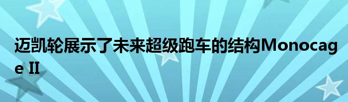 最近小茹姐發現邁凱輪展示了未來超級跑車的結構Monocage II這個話題相信很多小伙伴們都很感興趣吧,那么今天就帶大家了解下邁凱輪展示了未來超級跑車的結構Monocage II的具體詳情,那么小茹姐就來給大家說說具體的一些問題吧,希望對大家有所幫助。