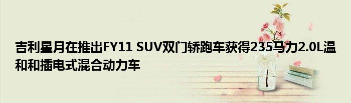 在吉利取笑其代號為FY11的新SUV“coupe”近六個月后,該公司終于在其國內市場推出了這款車。吉利星悅,正如它所稱,為該品牌引入了多種新技術和動力總成選擇,定價從135800元(R M82400)到208800元(R M126800)不等。