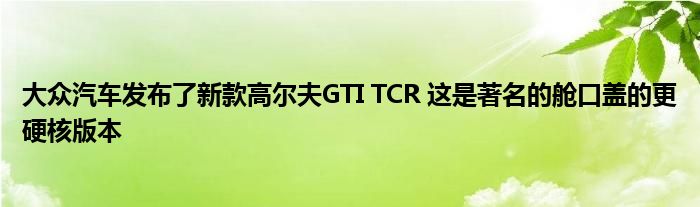 大眾汽車發(fā)布了新款高爾夫GTI TCR,這是著名的艙口蓋的更硬核版本,它將成為最快的量產(chǎn)GTI。