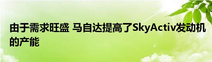 對新一代SkyActiv車型的強勁需求促使馬自達汽車公司將其廣島工廠的SkyActiv發動機產能提高了四分之一。