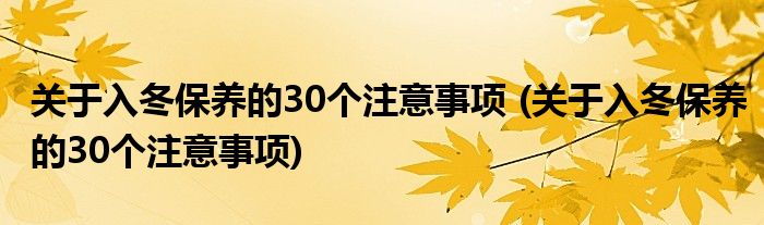 大家好,小美來為大家解答以上問題。關于入冬保養的30個注意事項,關于入冬保養的30個注意事項很多人還不知道,現在讓我們一起來看看吧!