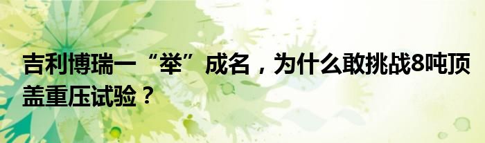 近日,吉利博瑞在寧波春曉成功挑戰極限8噸重壓測試,A柱、B柱幾無變化,車門被蒞臨現場的“局座”張召忠用小拇指輕輕一勾就能打開,被局座稱譽為“是汽車之王,是汽車制造的脊梁”。吉利博瑞此“舉”可謂一“舉”成名,在業界引起極大關注和網友討論。除了伴隨著成功的贊美聲,還有質疑聲,有自媒體認為這并不是IIHS標準測試的方式,對此,作為一名親臨現場的小編想從技術角度分析一下,吉利博瑞為何能成功挑戰8噸頂蓋重壓試驗。