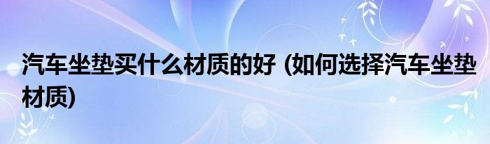 大家好,小美來為大家解答以上問題。汽車坐墊買什么材質(zhì)的好,如何選擇汽車坐墊材質(zhì)很多人還不知道,現(xiàn)在讓我們一起來看看吧!