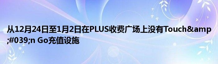 PLUS馬來西亞有限公司(PLUS)將關閉收費廣場入口處的所有Touch'n Go充值設施,從周二(12月24日)至明年1月2日開始。