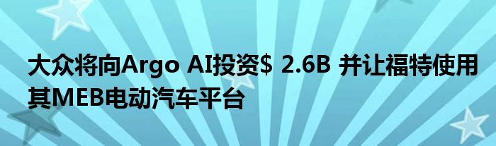 大眾將向Argo AI投資26億美元。10億美元將來自資金,其余16億美元將以大眾汽車的自動駕駛智能公司(AID)的形式提供,該公司擁有200多名員工,并負責大眾集團的自動駕駛汽車開發。大眾還將在三年內從福特手中購買一些Argo AI股票,使這家AV子公司的總估值達到約70億美元。