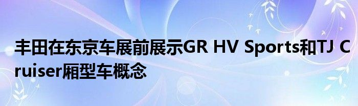 豐田汽車在2017年東京車展前伸出了雙手,未透露一款,而是兩款概念車將在首次亮相。首先是GR HV運動概念車,其靈感來自汽車制造商的 TS050 LMP1賽車。第二個是TJ巡洋艦概念車,將SUV的造型和廂式貨車的功能性融入一種“生活方式”的汽車中。