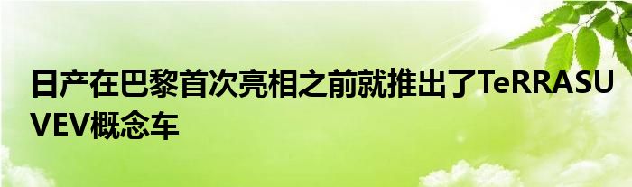 日產在巴黎首次亮相之前就推出了TeRRA SUV EV概念車。TeRRA具有創新的4×4燃料電池電動動力總成,該動力總成結合了當前日產LEAF當前所采用的電動推進系統。在每個后輪中,根據PIVO概念中的工作原型,根據需要提供全輪動力。
