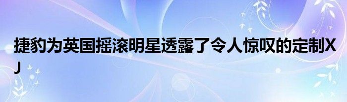 現在越來越多的小伙伴對于捷豹為英國搖滾明星透露了令人驚嘆的定制XJ這方面的問題開始感興趣,因為大家現在都是想要了解到此類的心,那么既然現在大家都想要知道捷豹為英國搖滾明星透露了令人驚嘆的定制XJ,花姐今天就來給大家針對這樣的問題做個科普介紹吧。