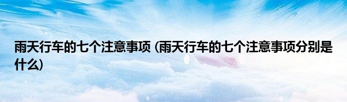 大家好,小美來為大家解答以上問題。雨天行車的七個注意事項,雨天行車的七個注意事項分別是什么很多人還不知道,現(xiàn)在讓我們一起來看看吧!