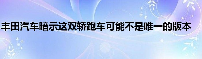 現在越來越多的小伙伴對于豐田汽車暗示這雙轎跑車可能不是唯一的版本這方面的問題開始感興趣,因為大家現在都是想要了解到此類的心,那么既然現在大家都想要知道豐田汽車暗示這雙轎跑車可能不是唯一的版本,花姐今天就來給大家針對這樣的問題做個科普介紹吧。