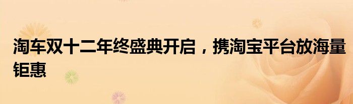 繼雙十一購物狂歡節圓滿落幕后,淘車雙十二活動再次來襲。作為國內專業的二手車新零售平臺,12月1日起,淘車已在電商平臺淘寶正式開啟“12.12年終盛典”購車狂歡活動,聯動為消費者帶來更多購車鉅惠,讓消費者輕松體驗淘車一站式購車的便利。