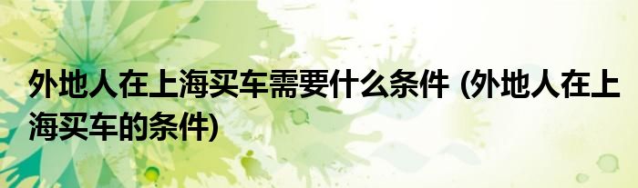 大家好,小美來(lái)為大家解答以上問(wèn)題。外地人在上海買(mǎi)車(chē)需要什么條件,外地人在上海買(mǎi)車(chē)的條件很多人還不知道,現(xiàn)在讓我們一起來(lái)看看吧!