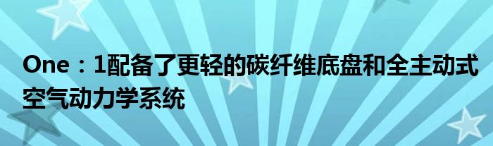基于Agera,One:1配備了更輕的碳纖維底盤和全主動式空氣動力學系統,在前分離器下方設有獨立的左,右前襟翼,并通過液壓驅動的頂部安裝雙平面后機翼。