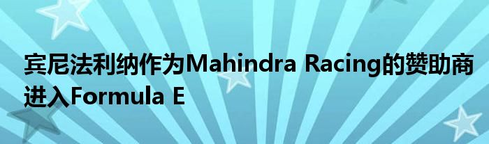 賓尼法利納(Pininfarina)周二宣布,它將作為Mahindra Racing的贊助商參加Formula E錦標(biāo)賽。