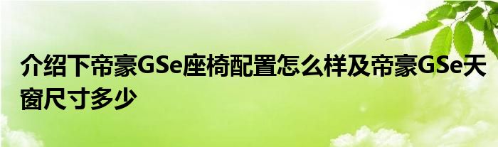 今天小編花姐給大家整理關于帝豪GSe座椅配置怎么樣及帝豪GSe天窗尺寸多少,讓大家對于帝豪GSe座椅配置怎么樣及帝豪GSe天窗尺寸多少有一個全方面的了解,那么接下來就由花姐來給大家做個詳細的介紹吧。