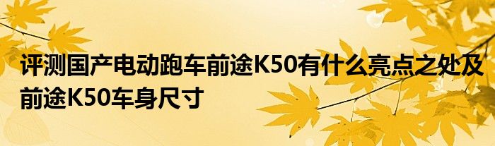 前途K50采用了全鋁框架式車身,并且車身覆蓋全件全部采用了碳纖維材質,百公里的加速時間為4.6秒,最高的時速為200公里一小時,綜合續航里程為380公里。