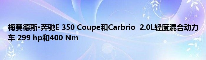 梅賽德斯-奔馳即將在其即將舉行的E級雙門跑車和敞篷跑車首演中首次亮相一款新開發的四缸汽油發動機,其性能可與高性能六缸發動機媲美,但油耗卻有所降低-額定功率為6.7升跑車為/ 100公里,敞蓬車為6.8升/ 100公里。
