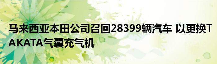 馬來西亞本田正采取積極措施來確??蛻舭踩?,預防性召回28,399單位車輛,以代替TAKATA前排乘客安全氣囊充氣機。