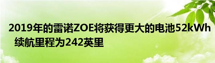 隨著雷諾更新其電動汽車以與較新的競爭對手競爭,2019年的雷諾ZOE將獲得更大的電池– 52kWh –續(xù)航里程為242英里。
