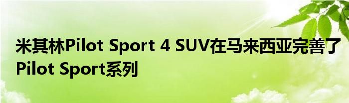 隨著Pilot Sport 4 SUV的發布,馬來西亞米其林現在已經通過專門為匹配其車輛而開發的輪胎來響應高性能SUV車主的呼吁。Pilot Sport 4 SUV的推出也完善了Pilot Sport系列,包括Pilot Sport 4、4 S,Cup 2和Cup 2R。