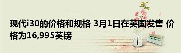 新款現代i30-于去年巴黎車展上展出-將于3月1日在英國發售,i30 S 1.0 T-GDi 120PS的售價為16,995英鎊。