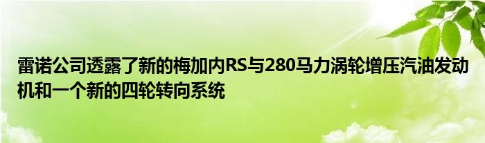雷諾公司透露了新的梅加內RS與280馬力渦輪增壓汽油發動機和一個新的四輪轉向系統。這家法國公司的旗艦熱艙口將給予本田思域R型和大眾高爾夫GTI幾個不眠之夜時,第一批汽車抵達英國7月。