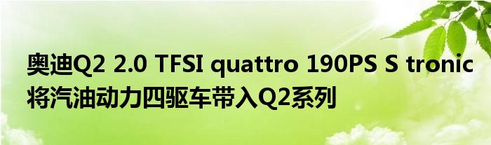 汽油動力的Q2首次配備quattro 4WD,在此Q2中,190 PS 2.0升TFSI可提供187bhp的功率,足以在6.5秒內達到62mph的時速,官方經濟性最高可達44.8mpg(取決于內飾)級別。