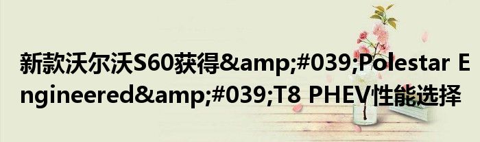 新款沃爾沃S60將配備Polestar工程版本的頂級T8雙引擎PHEV,隨后是V60和XC60。