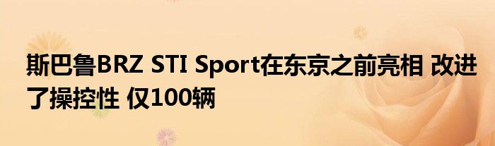 在豐田推出限量版豐田GT 86限量版黑色套裝后不久,斯巴魯還為其雙胞胎BRZ賦予了一些獨(dú)特的風(fēng)格。在2017年東京車展之前發(fā)布,僅將為生產(chǎn)100輛BRZ STI Sport。