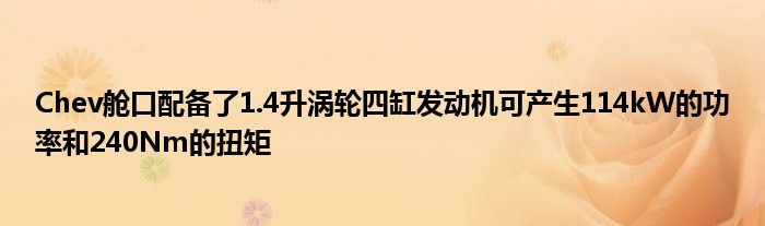 在發動機艙中,Chev艙口配備了1.4升渦輪四缸發動機,可產生114kW的功率和240Nm的扭矩。它與前輪驅動的六速手動或自動變速箱匹配。