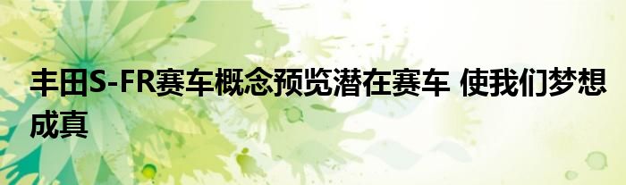 Toyota S-FR Racing Concept是由Gazoo Racing的團隊開發的,他們在調整豐田賽車的設計方面具有豐富的經驗。如果該車投入生產,則有望在多個市場銷售,從到歐洲,甚至在。