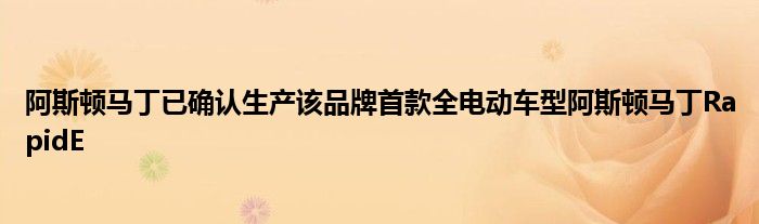 阿斯頓馬丁已確認生產該品牌首款全電動車型阿斯頓馬丁RapidE。RapidE將基于Rapide AMR,采用威廉姆斯高級工程公司提供的電池技術。限量生產將于2019年開始,155個副本專門用于潛在所有者。