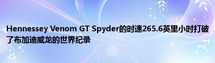 Hennessey Venom GT Spyder在加利福尼亞海軍航空站Lemoore行駛時的時速為265.60 mph,擊敗了Veyron的254.04 mph。布加迪Vitesse的時速約為11英里/小時。黨!無論如何,還是使用Racelogic VBOX來記錄GT Spyder的速度。