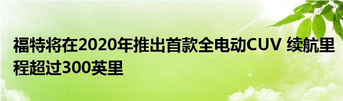 在一場改變游戲規則的舉措中,福特已經透露它將很快生產出首款全電動CUV,它將從頭開始制造,并將于2020年推出。