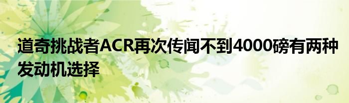 盡管挑戰者ACR已在2011年的SEMA展上以SRT8的好東西作為一次性概念展示,但道奇未能提出量產模型。業內人士“穆瑟”告訴Allpar.com,我們應該期待兩種變體,一種是Hellcat Redeye引擎,另一種是392 HEMI。