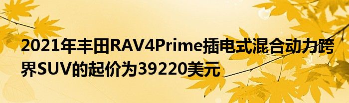 根據(jù)豐田汽車公司的數(shù)據(jù),豐田汽車公司周五宣布,2021 RAV4 Prime插電式混合動力跨界車將在6月底或7月初上市銷售時至少花費(fèi)39,220美元。