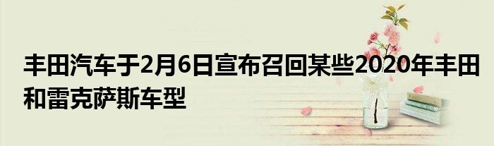 豐田汽車于2月6日宣布召回某些2020年豐田和雷克薩斯車型,并命令經(jīng)銷商停止銷售44,191輛受影響的車型,其中包括: