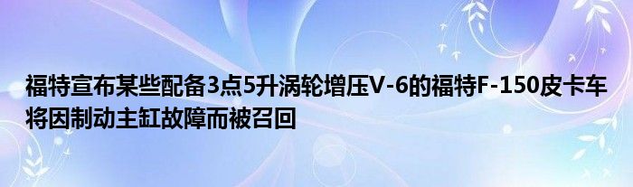 福特周三宣布,某些配備3.5升渦輪增壓V-6的福特F-150皮卡車將因制動主缸故障而被召回。