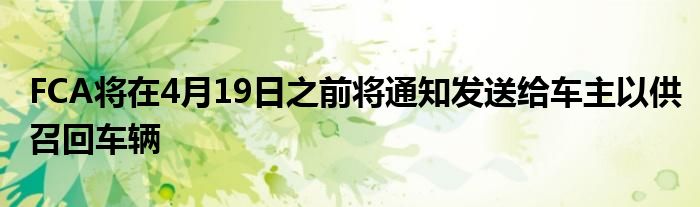 FCA將在4月19日之前將通知發(fā)送給車主,以供召回。