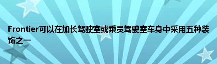 護林員可提供三種配平等級,可選擇帶6英尺床的加長駕駛室或帶5英尺床的乘員艙。Frontier可以在加長駕駛室或乘員駕駛室車身中采用五種裝飾之一。擴展駕駛室Frontiers配備6英尺高的床,而長臥床或5英尺高的床都配備了乘務員駕駛室。