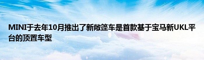 MINI于去年10月推出了新敞篷車。這是首款基于寶馬新UKL平臺的頂置車型。它比以前長98毫米,寬44毫米,高7毫米,提供了更多的機艙空間。行李箱空間也擴大了25%,在車頂向上時提供215升,車頂向下時提供160升。