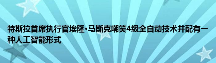 特斯拉(Tesla)首席執行官埃隆·馬斯克(Elon Musk)嘲笑“ 4級”全自動技術,并配有一種人工智能形式,可以“比人們想象的更快”實施。