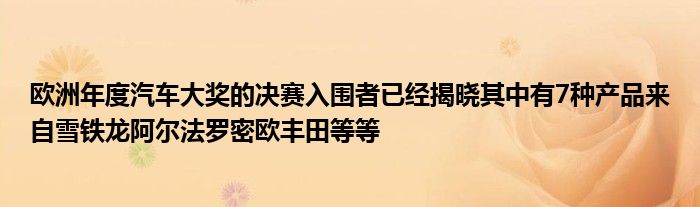 2017年歐洲年度汽車大獎的決賽入圍者已經揭曉,其中有7種產品來自雪鐵龍,??阿爾法羅密歐,豐田等等。歐洲年度最佳汽車提名有30多個,而其中只有7個,其中前7名的汽車涵蓋了從緊湊型城市汽車到SUV的所有產品。排名前七位的排名如下(無特定順序)。