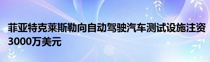 菲亞特克萊斯勒汽車公司(Fiat Chrysler Automobiles)周三表示,已斥資3000萬美元在密歇根州切爾西市建立了一個新工廠,該試驗場設施將幫助其開發自動駕駛汽車。