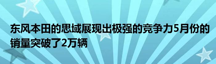值得一提的是,東風本田的思域展現出極強的競爭力,5月份的銷量突破了2萬輛,力壓廣本雅閣成為本田5月國內的銷冠車型。并且隨著國產兩廂思域的預熱,思域的關注度也將持續增高。