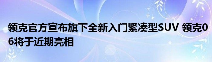 基于沃爾沃平臺!領克入門級SUV 06將于近期發布