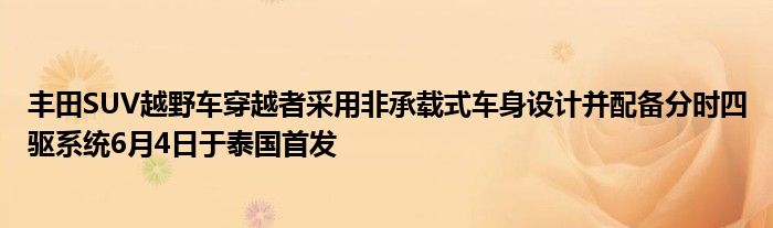 該車為Fortuner(國內為穿越者),來自于海拉克斯皮卡平臺,采用非承載式車身設計,并配備分時四驅系統。