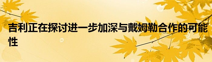 近日,吉利控股集團董事長李書福對外表示,吉利正在探討進一步加深與戴姆勒合作的可能性。由此,不排除吉利與戴姆勒之間將會產出新的合作機會。