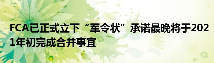 5月6日消息,據外媒報道,FCA已正式立下“軍令狀”,承諾最晚將于2021年初完成合并事宜。