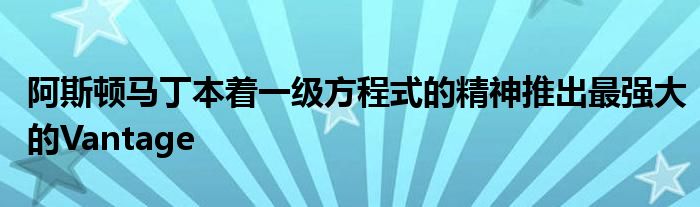 阿斯頓馬丁推出了一款特別版的 Vantage 超級(jí)跑車,它被稱為家族中最強(qiáng)大的。這款新奇車型采用了一級(jí)方程式安全車風(fēng)格的特殊外觀設(shè)計(jì)、升級(jí)的懸架和 AMG 八缸雙渦輪增壓發(fā)動(dòng)機(jī)。